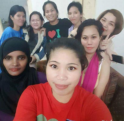 Một số lao động giúp việc gia đình Việt Nam và Philippines trong một công ty môi giới ở Ả Rập Saudi