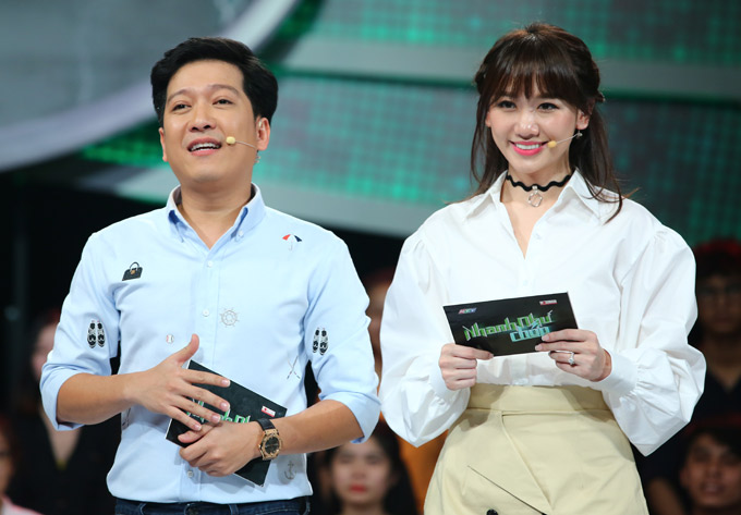 Trong một chương trình gameshow, nếu như Trương Thế Vinh là khách mời thì Trường Giang, Hari Won kết đôi làm MC khá ăn ý. Cùng 'chiến tuyến' nhưng bà xã của Trấn Thành và diễn viên hài "chặt chém" nhau liên tục trên sóng truyền hình. Thậm chí, giọng ca "Anh cứ đi đi" còn bị Trường Giang chê nói giọng lơ lớ, không ai hiểu.