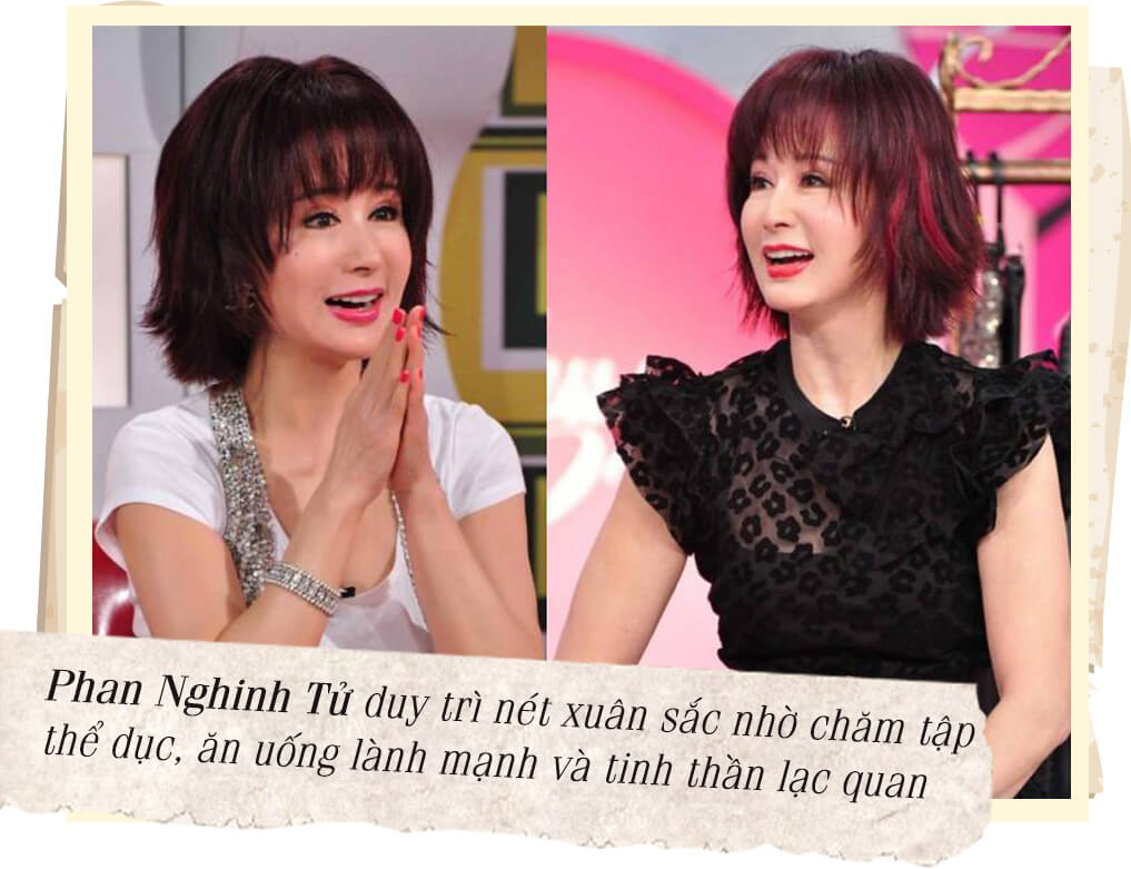 Bí quyết duy trì nét xuân sắc của Phan Nghinh Tử là nhờ chăm tập thể dục, thói quen ăn uống lành mạnh và tinh thần lạc quan. “Tôi rất chăm tập thể dục. Tôi chạy bộ bằng máy tập ít nhất 20 phút mỗi ngày. Tôi cũng uống nhiều nước lọc, ăn nhiều rau và các loại hoa quả tươi. Tôi luôn giữ thái độ lạc quan. Dù cuộc đời có nhiều thăng trầm nhưng miễn là ta giữ được trái tim trẻ trung thì sẽ luôn tươi trẻ”, Phan Nghinh Tử cho hay.