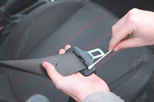 Dùng bông tăm lau bề mặt chốt cài dây đai an toàn...