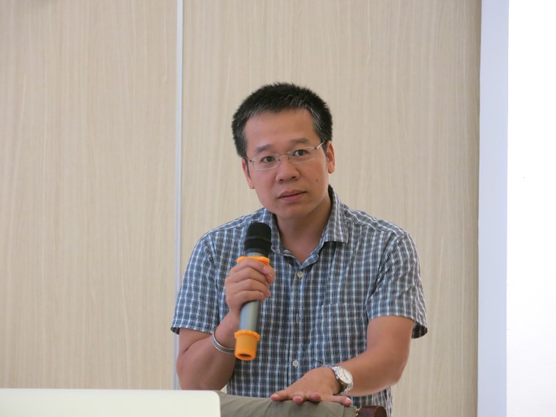 Nhà báo Đỗ Doãn Hoàng (Báo Lao Động) chia sẻ kinh nghiệm khi điều tra, đưa tin về đề tài nạn buôn bán người. Ảnh: N.T