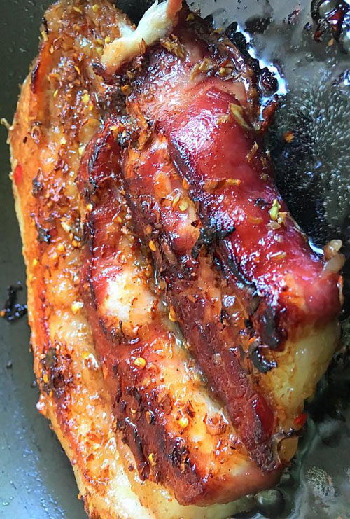 Thành phẩm thịt ba chỉ chiên giòn. Ảnh: Su Lì