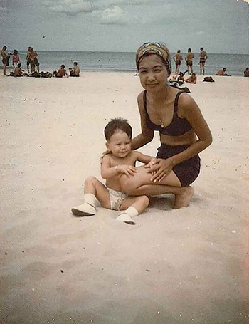 Jimmy Miller hồi nhỏ chụp cùng mẹ trên bãi biển ở Việt Nam. Ảnh: NBC.