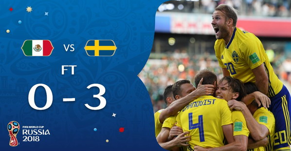 Mexico 0 - 3 Sweden, South Korea 0 - 0 Germany như vậy Đức và Hàn Quốc sẽ về nước.