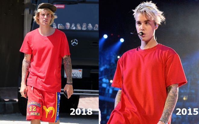 Chàng hoàng tử đã khiến bao trái tim cô gái tan chảy năm nào giờ đây đã hoàn toàn mất đi vẻ bảnh bao do bỏ bê chăm sóc da, nuôi tóc dài ngoằng hay thậm chí là chăm bẵm cho đống mụn ngày càng béo mầm núc ních trên mặt. Chỉ cần so với Justin của 3 - 4 năm trước và Justin của thời hiện tại, chắc các fan sẽ chẹp miệng không ngừng vì tiếc. Sự tương phản thấy rõ nhất là khi anh mặc cùng một kiểu trang phục nhưng ở 2 thời điểm khác nhau với 2 phong cách khác nhau.