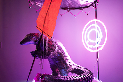 Anh cũng đưa ra một điều lạ khác trong cuộc triển lãm, là ở Á Châu có rất nhiều người tin sự luân hồi, nhưng niềm tin đó không ngăn cản sự đối xử tàn ác với động vật. Điều đó được phản ảnh trong tác phẩm The Irony of Our Worship (con tê tê)/ The Revolutionary Reincarnated As A Pangolin (Sự trớ trêu của việc thờ phượng của chúng ta / Người cách mạng hóa kiếp thành con tê tê) có dạng một bàn thờ tổ tiên theo truyền thống, tôn vinh một con tê tê cầm một tấm biểu ngữ phản đối có viết câu “Thà Chết Hơn Là Tuyệt Chủng.”