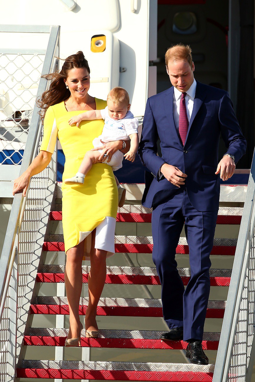 Nghe thì có vẻ lạ, nhưng đây là điều hoàn toàn thực tế. Vào năm 2014, Hoàng tử William và Công nương Kate Middleton từng có 1 chuyến công du đến Austraylia. Trong ngày đầu tiên tại đây, Công nương chọn diện mẫu váy vàng khá nổi bật của thương hiệu Roksanda.