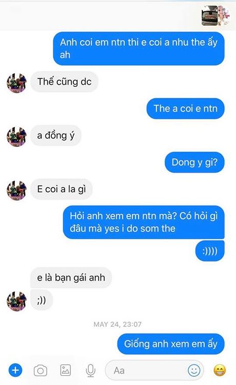Mình đăng lên tin nhắn mới nhất và tin nhắn cũ ông ấy làm quen inbox rồi tán tỉnh mình trước.