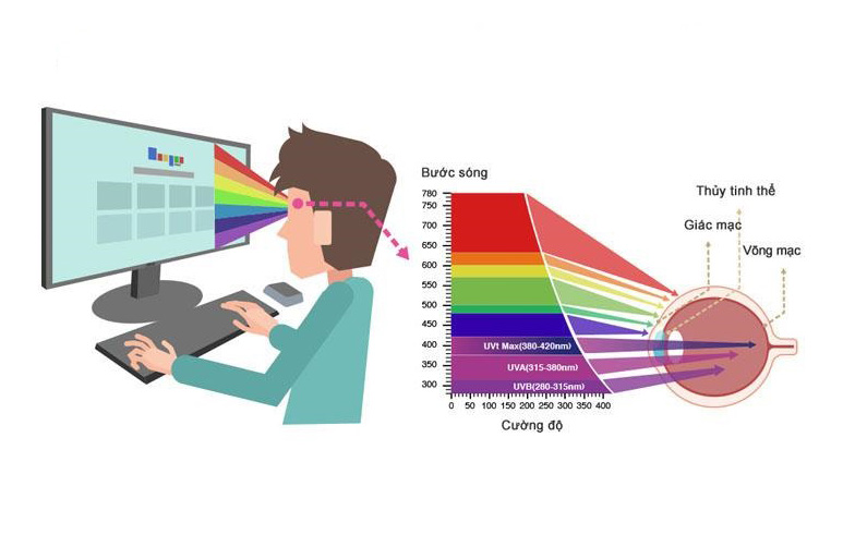 Nghiên cứu của Karunarathne giải thích chi tiết chính xác cách thức mà bệnh về mắt xảy ra, và ánh sáng xanh là một phần của điều đó. “Khi chúng ta ở trong bóng tối, đồng tử của chúng ta bị giãn nở và cần nhiều ánh sáng … Nhưng khi có nhiều ánh sáng trong phòng, điều đó sẽ giúp đồng tử của bạn sẽ thu nhỏ lại một chút và giảm lượng ánh sáng đi vào mắt, qua đó giảm ánh sáng xuống dưới ngưỡng nguy hại cho mắt. ”