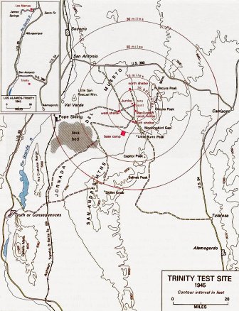 Sơ đồ vị trí thử nghiệm quả bom nguyên tử đầu tiên trên thế giới.