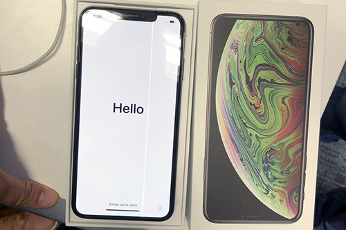 iPhone Xs Max vừa mua đã bị lỗi màn hình sọc. Chiếc iPhone Xs Max xuất hiện sọc trên màn hình. Một khách hàng vừa bóc hộp chiếc điện thoại mới của Apple thì màn hình của máy xuất hiện sọc màu xanh.