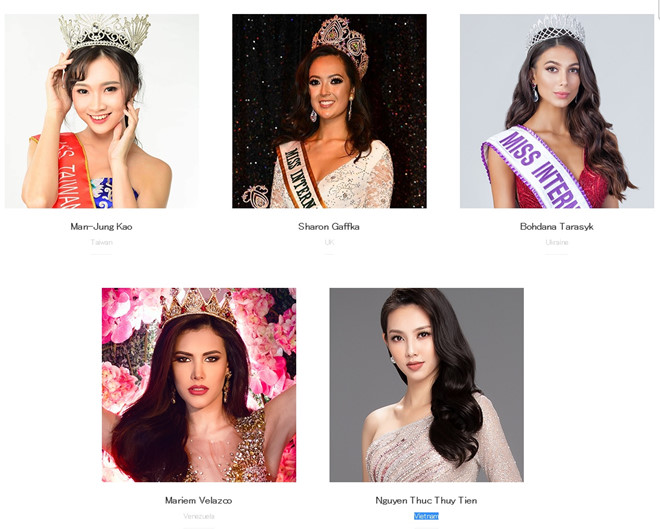 Hình ảnh của Thùy Tiên đã được cập nhật trên trang web của cuộc thi Hoa hậu Quốc tế 2018.
