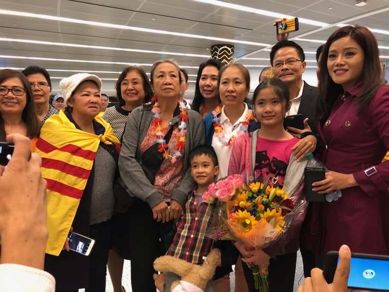 Chuyến bay EVA52 mang blogger Mẹ Nấm Nguyễn Ngọc Như Quỳnh cùng mẹ và hai người con của cô đáp xuống phi trường IAH ở Houston, Texas lúc 10 giờ 53 phút tối Thứ Tư, 17 Tháng Mười, 2018 (8 giờ 53 tối California). Đông đảo đồng hương, các tổ chức hội đoàn và cơ quan truyền thông quốc gia cũng như địa phương có mặt từ sớm để chào đón gia đình cô dù trời đã khuya và đêm bắt đầu trở lạnh.