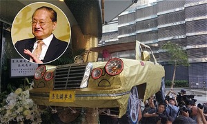 ... và một chiếc xe hơi biển số Trung Quốc cũng được hỏa táng theo Kim Dung về trời.