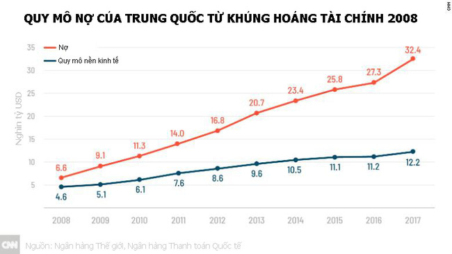 Nhiều năm sau khủng hoảng tài chính toàn cầu, kinh tế Trung Quốc tăng trưởng nhanh chóng nhờ nợ.