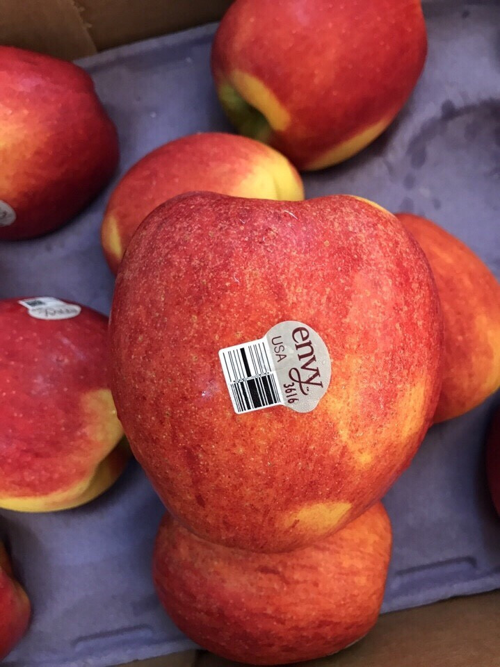 Đây là táo Envy có nguồn gốc từ New Zealand, là sản phẩm của quá trình lai tạo giữa táo Royal Gala và Braeburn. Loại táo này du nhập vào Mỹ năm 2009 và đã trở thành cây trồng chủ lực của nông nghiệp tiểu bang Washington. Vì khí hậu thích hợp với loại cây này nên quả táo ở vùng này chất lượng và năng suất nhất thế giới.