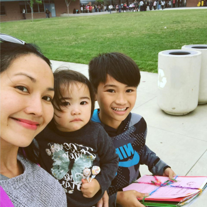 Kim Hiền dành phần lớn thời gian chăm sóc hai con. Ảnh: FBNV.