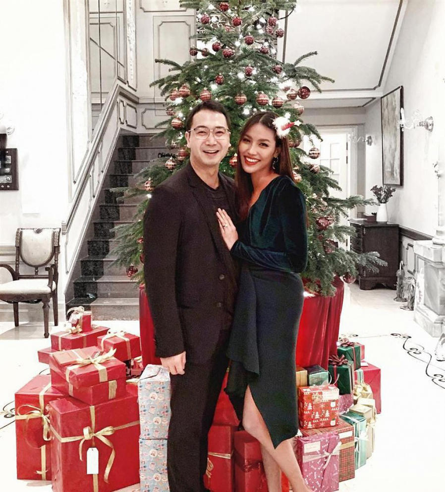 Trước đó, tin đồn Hoa khôi Áo dài 2014 mang bầu rộ lên khi cô đăng tải hình ảnh e ấp bên ông xã đại gia trong dịp Lễ Giáng sinh 2018. Tuy nhiên, thu hút mọi sự chú ý lại là thân hình có vẻ đẫy đà hơn của chân dài làng mẫu.