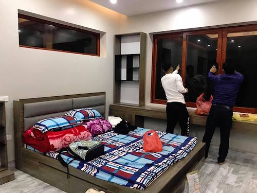 Phòng ngủ vẫn đang được Chinh đen hoàn thiện phần trang trí.