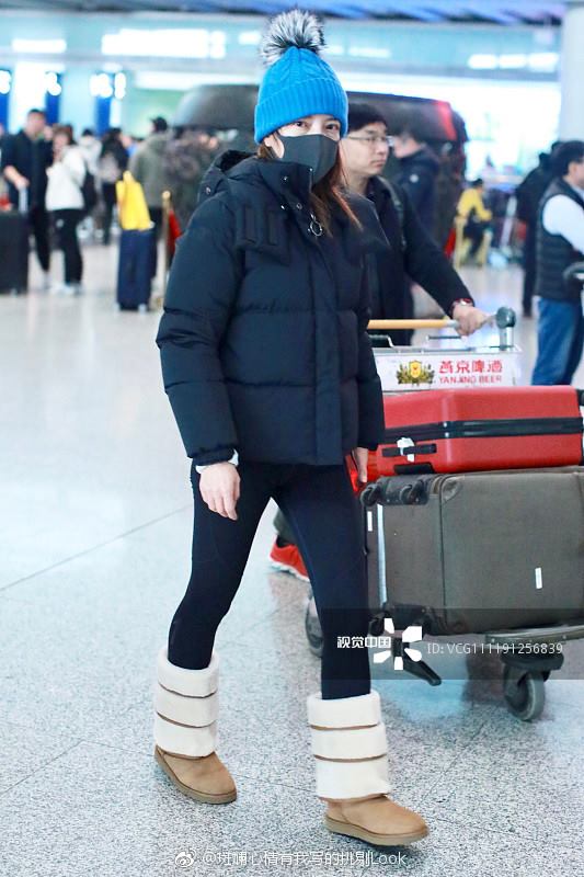 Hôm 13.2 vừa qua, “Én nhỏ” Triệu Vy bị bắt gặp xuất hiện tại sân bay Bắc Kinh. Cô nàng diện trang phục đơn giản với áo phao đen, quần legging ôm sát và điểm nhấn là đôi boot lông màu nude, cùng mũ len xanh nhằm giữ ấm cơ thể trong điều kiện thời tiết giá rét.