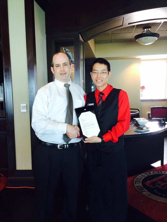 Tác giả được giám đốc công ty Texas Tech Club trao giấy khen