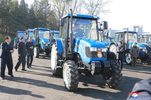 Nhà lãnh đạo Kim Jong-un lái thử máy kéo khi tới thăm một nhà máy tại Triều Tiên (Ảnh: Reuters)