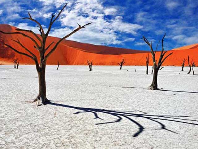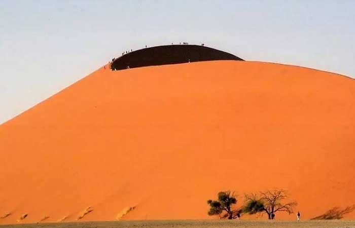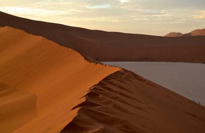 Sossusvlei lúc nào cũng nổi bật và rực rỡ, những đụn cát đỏ ấm áp đối lập với bề mặt trắng như tuyết khiến nơi này trở thành một địa điểm đáng chú ý.
