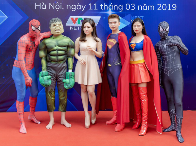 Tại sự kiện, Trâm Anh tạo dáng bên "biệt đội anh hùng" phiên bản người thật.