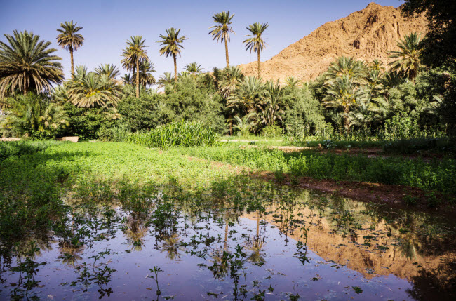 Ốc đảo Tinerhir cung cấp không gian xanh cực kỳ quý giá cho thị trấn cùng tên gần đó.