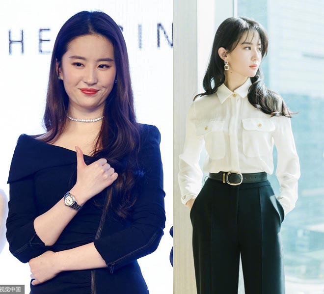 Trong quá khứ Lưu Diệc Phi thường không để tóc mái, lộ trán rộng.