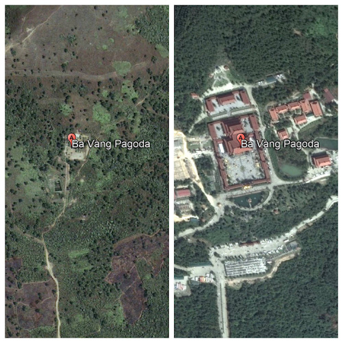 Hình ảnh vệ tinh của chùa Ba Vàng năm 2006 và năm 2016 - Ảnh: Google Earth