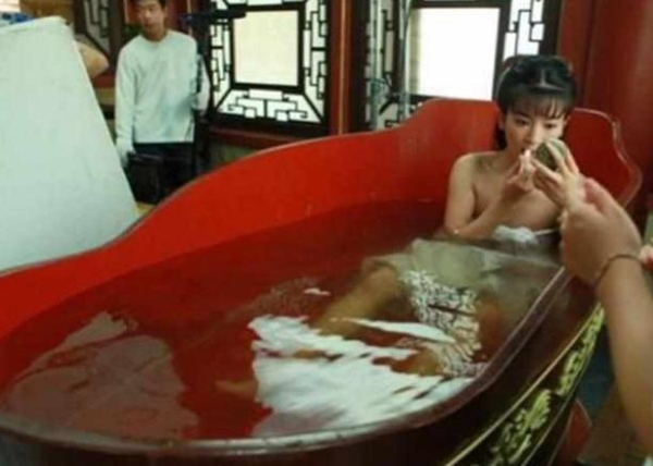 Những cảnh tắm của phim cổ trang Hoa ngữ khi quay cảnh ở bồn tắm như các sao Phạm Băng Băng nude và tắm thật, Địch Lệ Nhiệt Ba dùng áo nhựa bảo hộ, Quan Hiểu Đồng dùng máy tạo khói, khiến đa số diễn viên Trung Quốc đều sử dụng đồ bảo hộ, quay giả hoặc nhờ kỹ xảo hình ảnh can thiệp.