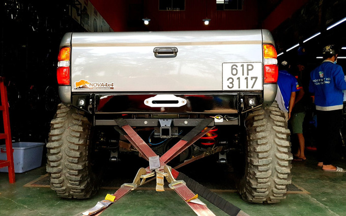 Mẫu xe nguyên bản gần như lột xác với khung sườn cũng như dàn gầm được độ lại. Xe có thêm một cầu, trở thành mẫu bán tải 6 bánh hàng độc tại Việt Nam. Xe trang bị phuộc độ từ hãng Red Phoenix và Old Man Emu. Bên cạnh đó là mâm độ Beadlock và lốp gai địa hình phục vụ thi đấu off-road.
