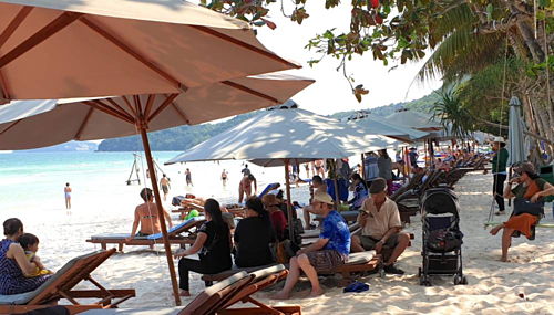 Sau hai tuần khám phá miền bắc và miền trung Việt Nam, tôi mong chờ những ngày thư thái trên bờ cát trải dài tại đảo Phú Quốc. Nhưng tôi biết mình không thể tìm thấy bình yên ngay khi vừa đặt chân tới Bãi Dài, nơi khách sạn, nhà hàng mọc lên san sát. Bãi Sao thậm chí còn đông đúc hơn. Bãi biển nên thơ với bờ cát trắng, hàng dừa nghiêng và làn nước xanh ngọc ken đặc du khách, môtô nước ồn ào và tiếng karaoke ầm ĩ.