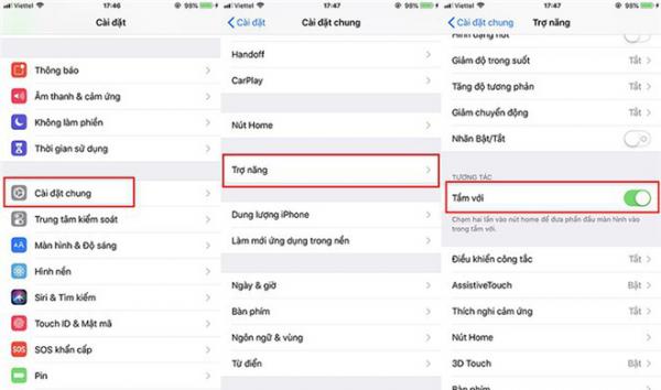 Để kích hoạt bạn hãy truy cập vào Cài đặt > Cài đặt chung > Trợ năng > Tương tác (tầm với) và bật lên. Để sử dụng sẽ có hai cách: