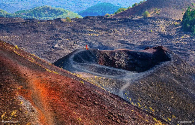 Núi Etna là một trong những ngọn núi lửa đẹp nhất thế giới và cho dù nó đang hoạt động, du khách vẫn có thể di chuyển lên đỉnh bằng cáp treo hay ô tô. Tiếp cận gần núi lửa đang hoạt động là trải nghiệm không bao giờ quên.