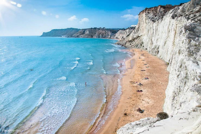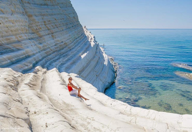9. Scala dei Turchi, Sicily: Nằm giữa hai bãi biển, vách đá Scala dei Turchi thực sự là thiên đường của những kỳ nghỉ. Tên của địa danh này trong tiếng Italia có nghĩa là "Cầu thang của người Thổ Nhĩ Kỳ", là một vách đá vôi trắng, được thiên nhiên “điêu khắc” như một cầu thang.