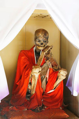 Quá trình ướp xác như vậy kéo dài đến 10 năm. Người ta cho rằng đã có vài trăm tu sỹ thực hành kiểu ướp xác này, nhưng cho đến nay chỉ có khoảng hai chục xác ướp được ghi nhận. Ảnh: Voyapon.