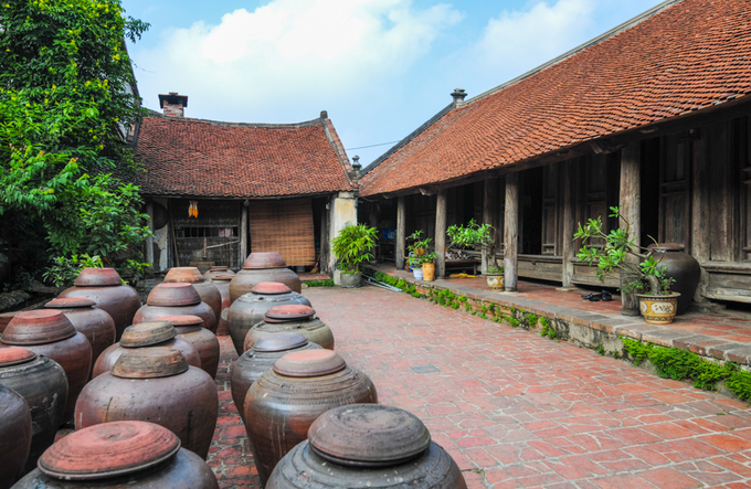 Trên những trục đường chính dẫn vào làng Đường Lâm đều có điểm bán vé tham quan. Du khách sau khi mua vé với giá 20.000 đồng mỗi người có thể tự do khám phá tất cả địa danh hoặc trả thêm tiền để thuê xe đạp, ăn uống và ngủ qua đêm. Ảnh: Kiều Dương.