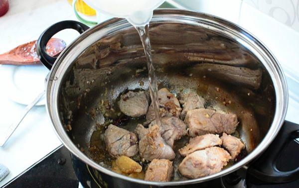Bước 4: Cho phần thịt lợn vai vào nồi.