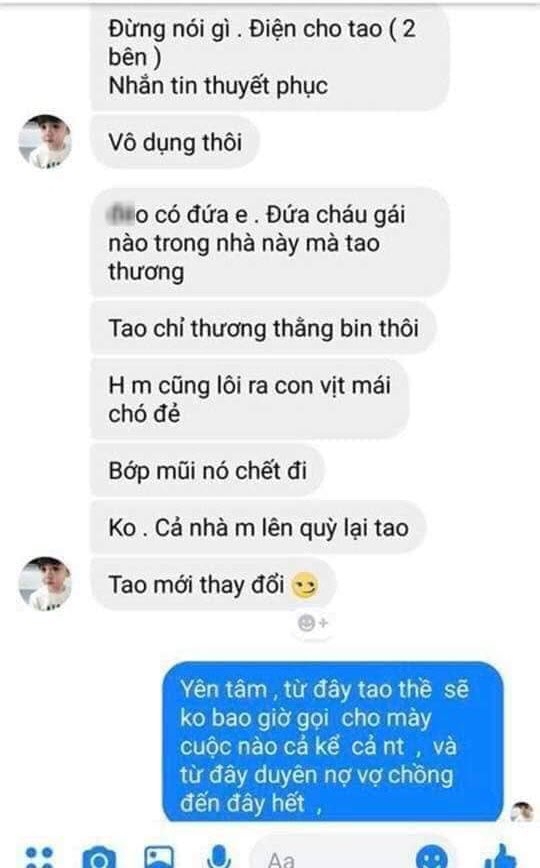 Nhiều người phẫn nộ với N.H.N khi đọc qua tin nhắn này, đua nhau vào Facebook cá nhân chửi bới và dọa giết hắn.