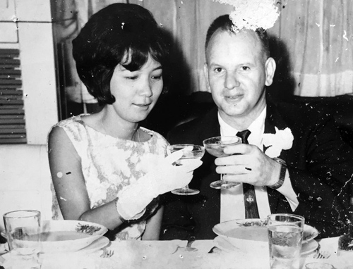 Bà Phan Kim Chi và ông James A. Miller trong lễ cưới ngày 21/5/1966. Ảnh: NVCC.