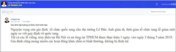 Tình hình căng thẳng đến mức bản thân ông Lê Mạnh Hà, con trai Lê Đức Anh đã phải tự ra thông báo trên Facebook của mình và phổ biến trên báo chí về việc tổ chức tang lễ cho cha mình và quy định cách chôn cất mà không thể đợi Nhà nước. Nguyên văn như sau:
