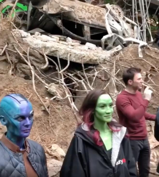 Trên phim trường còn có các diễn viên đóng thế vai Gamora và Nebula.
