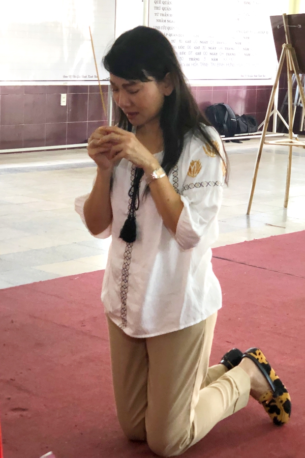 Vợ cũ nghệ sĩ Lê Bình tại tang lễ.