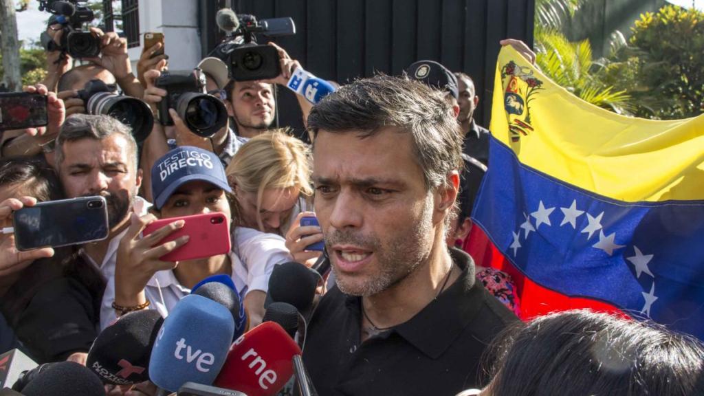 Vừa được một nhóm quân nhân nổi dậy giải thoát khỏi nơi bị quản thúc, nhà đối lập Leopoldo Lopez phải khẩn cấp vào sứ quán Tây Ban Nha lánh nạn.