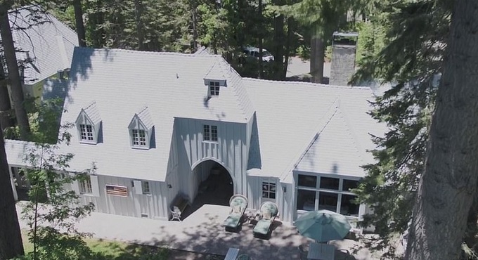 Căn nhà thứ nhất rộng 495 m2, xây từ những năm 1920 trên một mảnh đất rộng 2,4 ha. Biệt tự có 6 phòng ngủ, 5 phòng tắm với bến tàu riêng và cây cối xanh tốt xung quanh.