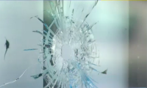 Vết đạn trên cửa kính quán cafe Việt, nơi xảy ra vụ nổ súng. Ảnh: NBC