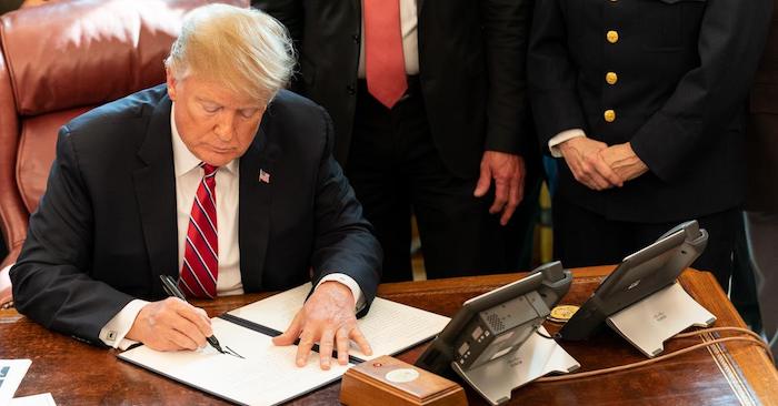 "Là tổng thống, bảo vệ quốc gia là nhiệm vụ cao nhất của tôi", Tổng thống Trump nói trước khi đưa ra quyền phủ quyết vào thứ Sáu (ngày 15/3) trong chuyến thăm công nhân xây dựng và năng lượng ở Hackberry, Louisiana. (Ảnh: The White House).