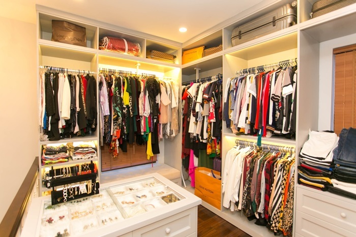 Váy áo, túi xách, vali, trang sức, phụ kiện... được cất riêng từng ngăn gọn gàng. Ước tính, Nhật Kim Anh có thể phối thành cả trăm bộ để phục vụ cho công việc.